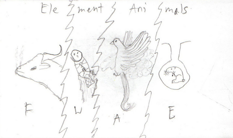 One animal for each of Fire, Water, Air and Earth. The mole is especially cute.