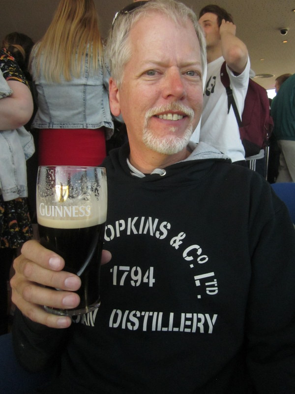 We were lucky to eventually get chairs at Gravity Bar - you can see behind Vernon how crowded it was. As one of the reviews said, it's basically a 20 Euro pint of Guinness, but with great views!