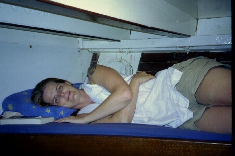 Here's Alison in our tiny room on the dive boat. Vernon had the