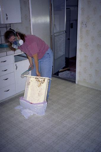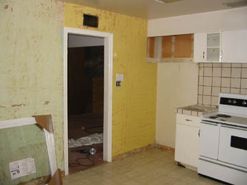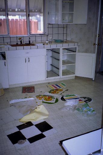 Our boxes full of stuff fill the kitchen. That's a door leaning