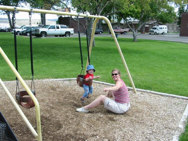 We didn't take too many pictures on the way back. Here are Alison and Cielo taking another car break in Elko, Nevada: