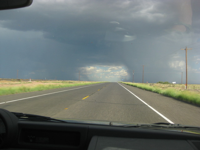 This part of the trip is also the only place we really got rained on. We saw a lot of lighting in New Mexico and Arizona, but - other than a strong shower in Tucson - no rain. The rain was waiting for us in Texas - the opening into blue sky straight ahead in this photo quickly closed up and it rained hard enough to severely limit visibility. Fortunately, the rain only lasted 15 or 20 minutes.